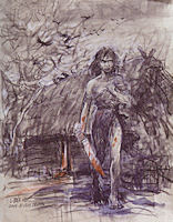 Hommage voulu par Giulio de Vita, peut-être aussi pour rester dans l'esprit de cohérence qui semble être au coeur de cette collection, la couverture est une reprise d'un dessin de l'album "Moi, Jolan". Aaricia, en visite nocturne chez la sorcière Mahara, écoutait avec effarement la vieille femme lui raconter l'histoire sordide d'une petite fille qui s'appelait Kriss... Les journalistes de dBD, chanceux visiteurs de l'atelier de Rosinski, ont exposé les étapes ayant mené à la couverture finale. Le dessin initial, proposé à Rosinski par de Vita, a été exploré par le peintre jusqu'à en fixer le ton et la couleur. On voit sur les deux dessins intermédiaires que Kriss est tantôt plutôt choquée et apeurée, tantôt agressive et déterminée. Au final, la couverture nous propose une Kriss à mi-chemin entre ces deux attitudes, armée, les poings serrés, mais la démarche hésitante et les yeux perdus.