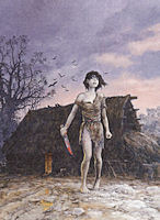 Contrairement à beaucoup de dessinateurs, Grzegorz Rosinski n'a jamais stabilisé son dessin sur la série. Chaque album de Thorgal est du coup quasi unique, avec ses approches, ses qualités et parfois ses défauts. Cela en fait une série vivante dont le dessin n'a jamais cessé d'évoluer. Pour Thorgal, de Vita a considérablement fait évoluer son dessin. Dans dBD, il nous dit "Je pense avoir libéré mon trait. Je me suis affranchi des techniques traditionnelles de la bande dessinée dite réaliste.". Il a beaucoup échangé avec Grzegorz Rosinski, présenté ses travaux, modifié son approche. Dans Le Soir, il dit "Je dessinais les bois comme des jardins parfaitement plantés, taillés, organisés. Dans Thorgal, il faut de la forêt sauvage, retrouver l’état de nature, simplifier sa peinture.". Il est intéressant du coup de comparer ses travaux pour voir commment il a cherché à proposer dans Thorgal un dessin équilibré, tenant compte de ses qualités propres tout en adhérant aux codes graphiques actuels de la série. Le dessin de Giulio est plus nerveux, moins net que dans ses autres albums. La nature est simplifiée, les arrière-plans souvent simplement esquissés. On retrouve aussi les ombrages hachurés, l'alignement traditionnel des cases... mais avec un dessin qui ne cherche pas à imiter celui de Rosinski. Voici quelques images extraites de Wisher et James Healer. Personnages, nature, architecture.
