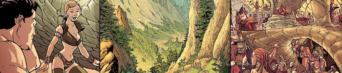 Cette planche interactive permet d'apprécier deux étapes de création des planches, des esquisses à la planche finale. Pour la découvrir, déplacez la souris sur elle de gauche à droite. Solidement encadrée par les guerrières de Freyja, Kriss est menée au trône de la déesse pour y découvrir le sort que lui réservent les Walkyries.