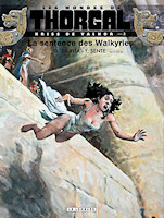 Echappant à l'un des écueils qui guette les Mondes de Thorgal, "La sentence des Walkyries" ne regorge pas de références aux albums de la série mère. Tant mieux, car trop de références finirait par les rendre artificielles. Mais l'album a pour objectif de s'insérer dans la série, et plus particulièrement de se faire le préambule de l'une des plus célèbres histoires de Thorgal, "Les archers". C'est forcément l'une des forces de "La sentence des Walkyries". Fondateur du mythe Kriss de Valnor, placé en tête des classements (voir l'Althing du site Thorgal-BD), "Les archers" est l'album emblématique de Thorgal. Il faut bien le dire, on oublie très vite l'histoire des Walkyries. Elles donnent leur nom à l'album, mais à part ça ? L'adolescence de Kriss nous entraîne dans son tourbillon de violence et éteint le présent en nous plongeant dans le passé. L'hommage au 9ème album de Thorgal est si assumé que le dessinateur, Giulio de Vita, n'hésite pas à reproduire plusieurs cases des Archers pour renforcer le lien entre les deux histoires. Yves Sente, de son côté, se sert d'Argun, des Calédoniens et de la pierre de sang pour lier son récit à celui de Van Hamme. Après cela, qu'on adhère ou non, on ne peut plus vraiment lire "Les archers" comme avant ! Pour partager le plaisir du dessinateur, voici quelques unes des cases revisitées par De Vita, suivies des "originaux" de Rosinski. Le chapitre clos, il faut bien en revenir aux Walkyries. Plutôt habile dans sa gestion des dernières pages, le scénariste nous propose une fin attendue dans le fond mais surprenante dans sa forme, une fin qui fait rebondir l'histoire et intrigue quant à la suite. Il en profite pour introduire un personnage qui pourrait devenir majeur dans la vie de Kriss, on le sent dans les quelques paroles échangées. Et le défi proposé à Kriss est immense. Un défi taillé sur mesure pour Thorgal, pas pour elle ! A suivre dans "Digne d'une reine". Voici quatre planches extraites de "La sentence des Walkyries". Ce sont les pages 7, 9, 10 et 13 de l'album. On retrouve Kriss peu après le drame qui a touché Sigwald. Poursuivis par les hommes du seigneur d'Alhard, les deux aventuriers vont devoir échapper à la vengeance du père d'Opale et se construire une nouvelle vie.