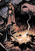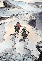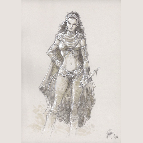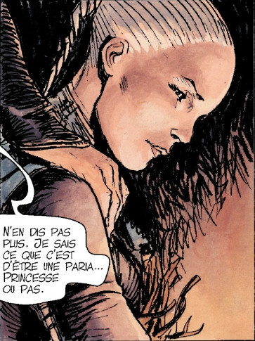 Ce n'est pas la première fois dans la série (l'affrontement entre Ewing et Thorgal, dans "La galère noire", un des premiers albums, était par exemple un modèle du genre). Les grandes étendues désertiques, les cavalcades, les campements au coin du feu, les brigands au coin du bois... et cette loi du plus fort qui masque simplement l'absence de lois, et qui autorise tout un chacun à se vouloir maître du monde ! Notre tireuse d'élite en profite pour devenir une combattante sauvage, maîtresse du corps à corps, spécialiste du bandit à la broche. Une transformation étonnante qui reste plausible grâce aux nombreux "trous" restants dans le passé de la belle et grâce à la férocité animale qu'on lui connaît depuis toujours.