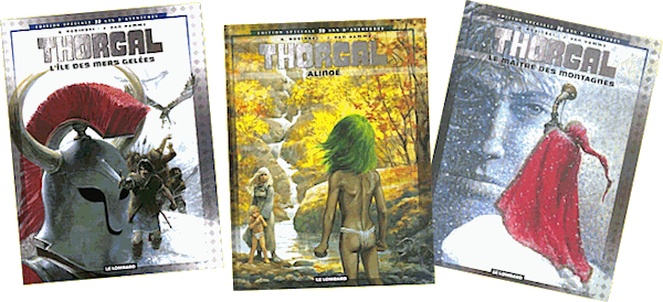 A l'intérieur des couvertures, l'habituel dessin représentant une côte scandinave a été remplacé par une fresque sur fond bleu-vert, listant les 30 albums de Thorgal en deux tranches de 15. Le reste de l'album est identique à l'édition normale, 46 pages en couleurs, donc. Pas de supplément, de crayonnés ou autres, même pas une petite intro pour présenter la série et son histoire. On sent que l'impression de ces albums s'est faite sans bouleverser la chaîne de l'imprimeur.